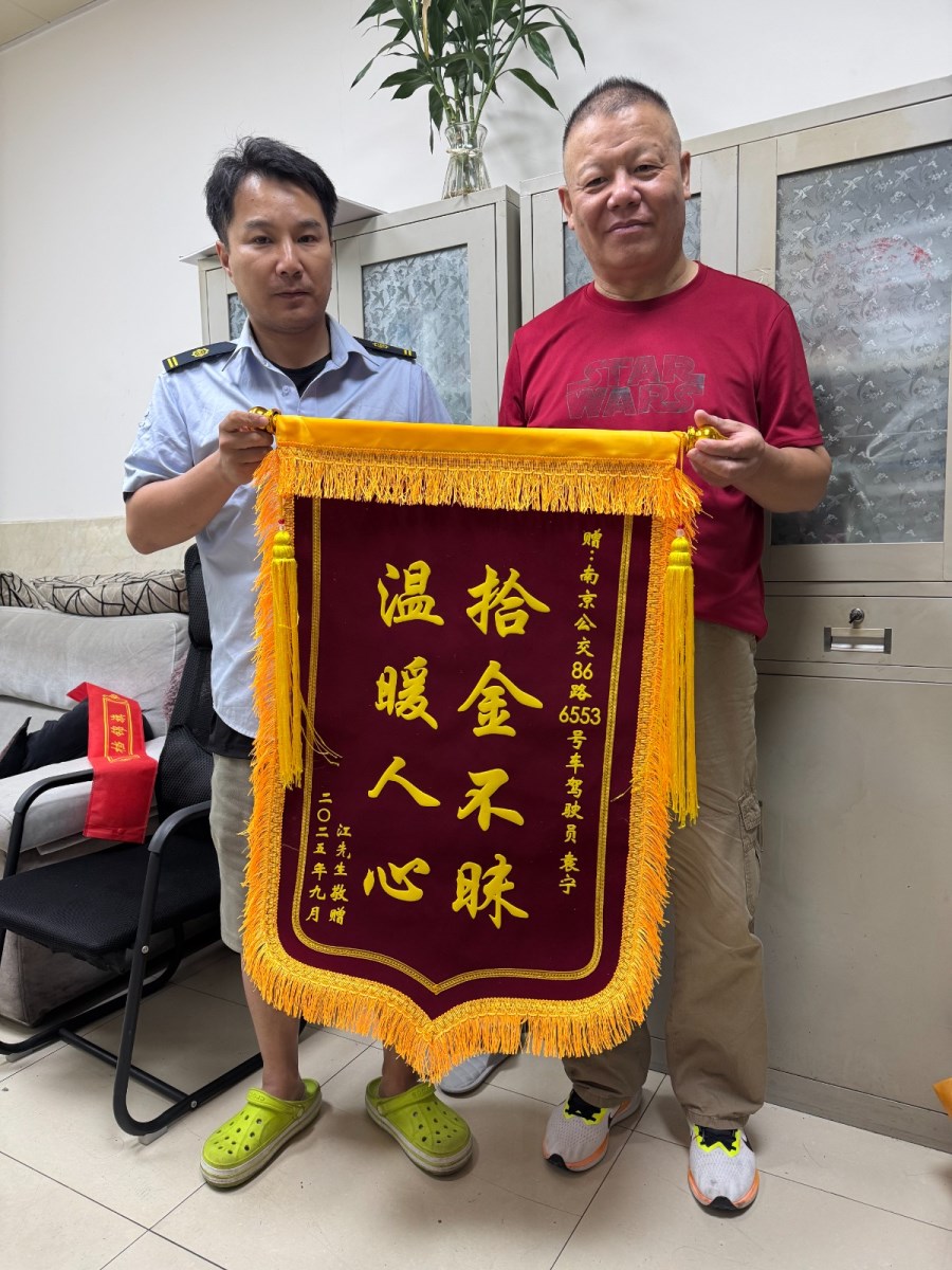 為了表達內心的感激之情,江先生特地制作了一面錦旗送到86路車隊所在的匯景家園場站,親手將錦旗送到駕駛員袁寧以及車隊工作人員手中。江先生激動地說:“這些證件對我太重要了,真的非常感謝你們,你們的善舉讓我感受到了溫暖。”袁寧則表示:“這都是我應該做的,每一位公交駕駛員遇到這種情況都會這么做,能幫到乘客我也很開心?!?/p>