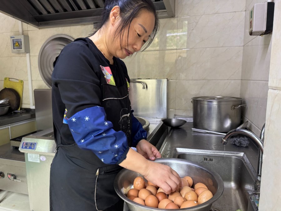 國(guó)慶假期,匯景家園公交場(chǎng)站的廚房里熱氣騰騰。即將退休的食堂工錢玲正忙著下面條、燒澆頭,二十年如一日。這是她在崗的最后一個(gè)國(guó)慶節(jié),鮮美的澆頭、熱乎的面條,是她給駕駛員們的專屬溫暖?!罢竞米詈笠话鄭?,讓大家吃好再出發(fā)?!焙?jiǎn)單一句話,藏著她對(duì)崗位的滿滿不舍。